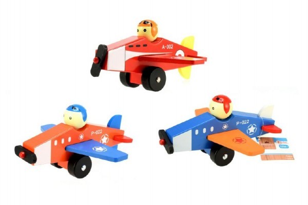 Letadlo dřevo 18cm asst 3 barvy 12m+