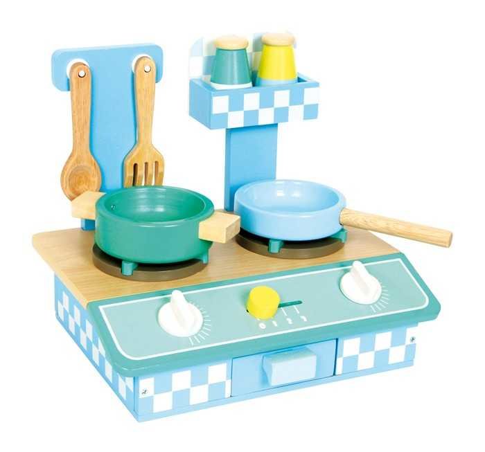 Vyrobena z jemně leštěného bukového dřeva v jemných pastelových barvách, přináší tato malá kuchyňka vysoký herní zážitek do dětského pokoje! Desky mají tvar plynového sporáku, otočné spínače cvakají, zásuvka je vybavena zarážkami a 6 doplňků ještě zvýší potěšení ze hry!Německá firma Legler...