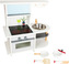 Kuchynka je vybavená otvárateľnou rúrou a odnímateľným kovovým drezom, čo prináša autentický zážitok pri hraní. Súčasťou je aj kuchynské náradie a dostatok priestoru na uloženie potravín v kuchynskej skrinke. Vďaka kompaktným rozmerom sa kuchynka zmestí aj do menších herných kútikov, kde bude skvelým centrom detských radovánok.