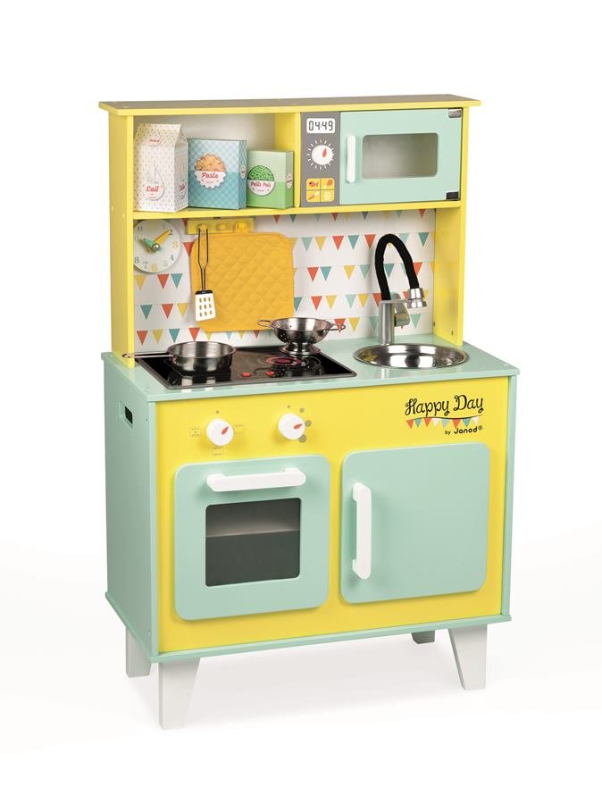Velká dřevěná kuchyňka Happy Day žlutá zelená Janod s příslušenstvím
