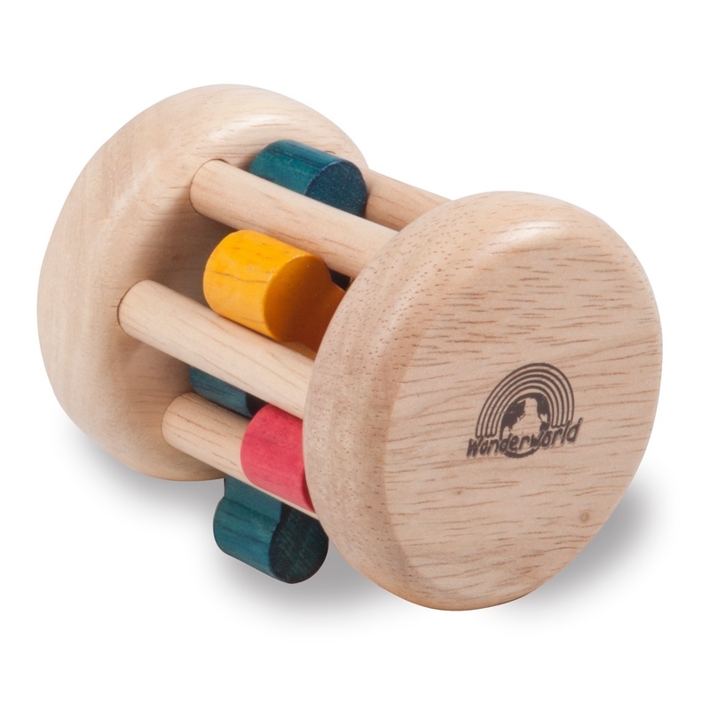Wonderworld Dřevěné chrastítko rachtající válecRachtající válec je velmi užitečná a originální hračka pro nejmenší děti. Při kutálení vydává válec zvuky s tím jak se jednotlivé elementy uvnitř pohybují.Tento produkt patří do série Colour from Nature. Je barven speciálními barvami na přírodní...