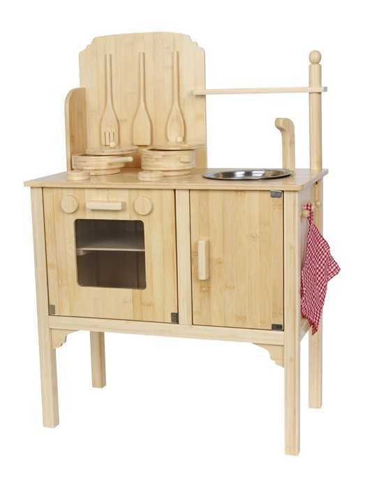 Vařečku používají děti nejraději v teto krásné a podrobně vybavené kuchyni. Kuchyně z bambusu má dvě plotny a otočné přepínače, hrnec a pánev, kuchyňské chňapky, tři kuchyňské pomocníky a vyjímatelný kovový dřez. Za dveřmi se skrývá dostatek úložného prostoru pro zásoby.Německá firma Legler...