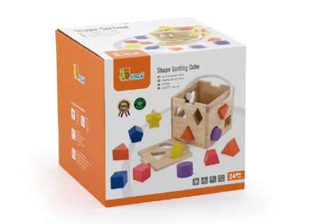 Dřevěná vkládačka kostka o rozměru cca 14,5 x 14,5 x 14,5 cm. Rozměry balení cca 19,5 x 20 x 19,5 cm. Věk 2+ prečítať celé