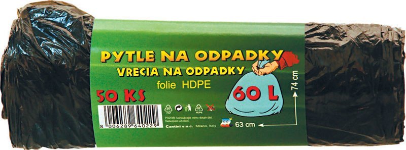 Pytle na odpadky 50 ks; 16x5,5x5,5 cm; 60 l; 6 mi; plast
