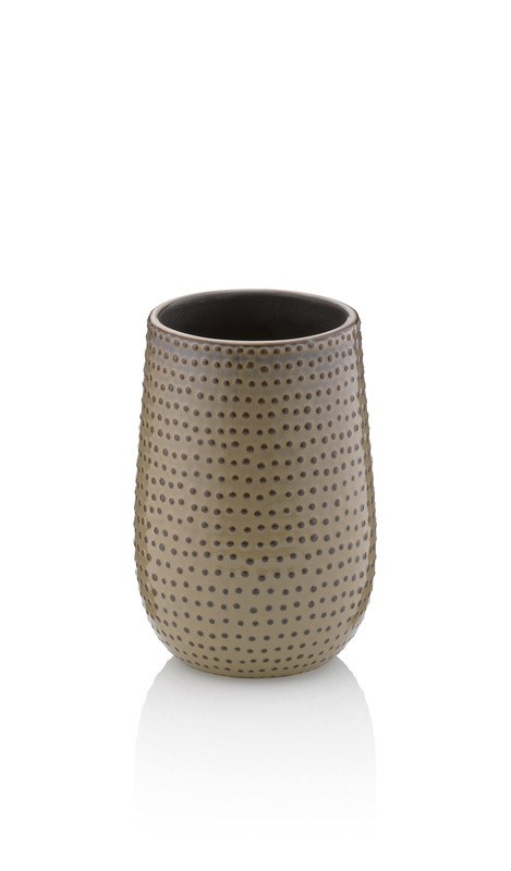 Speciální koupelnový pohár ze série Dots. Vizuálně zachován v barvě mocha, tento příklad je něco zvláštního. Takzvané tečky jsou vystouplé a jsou tedy cítit, když hrnek držíte v ruce. Rozměry: výška 11,5 cm, průměr 8,0 cm Keramický, lesklý, 8 cm, v. 11,5 cm prečítať celé