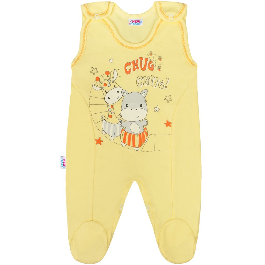 Bavlněné kojenecké dupačky New Baby pro miminka v krásné pastelové barvě. Dupačky jsou jednobarevné s obrázkem a s nápisem chug chug. Dupačky jsou vhodné pro miminka už od narození pro svou jemnost a měkkost. Praktické zapínání na cvočky na ramínku a mezi nožičkami. Složení: 100% bavlna.