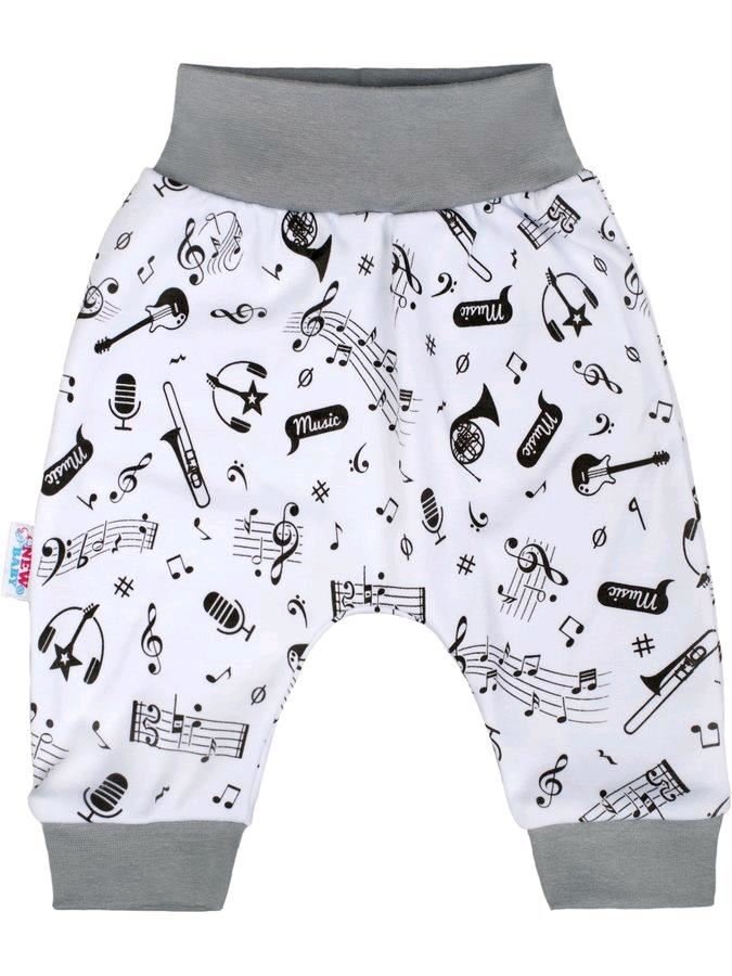 Bavlněné kojenecké polodupačky New Baby Music pro miminka. Polodupačky jsou jednobarevné s origínálním potiskem notiček a hudebních nástrojů. Mají široký lem, který netlačí na bříško miminka. Zapínání mezi nožičkami na cvočky. Náše originální a zároveň veselé polodupačky jsou vhodné pro kluky i holčičky. Složení: 100% bavlna. Rozměr: obvod kolem pasu cca 30 cm, obvod přes boky cca 48 cm, délka od pasu cca 31 cm, délka od rozkroku cca 14 cm.