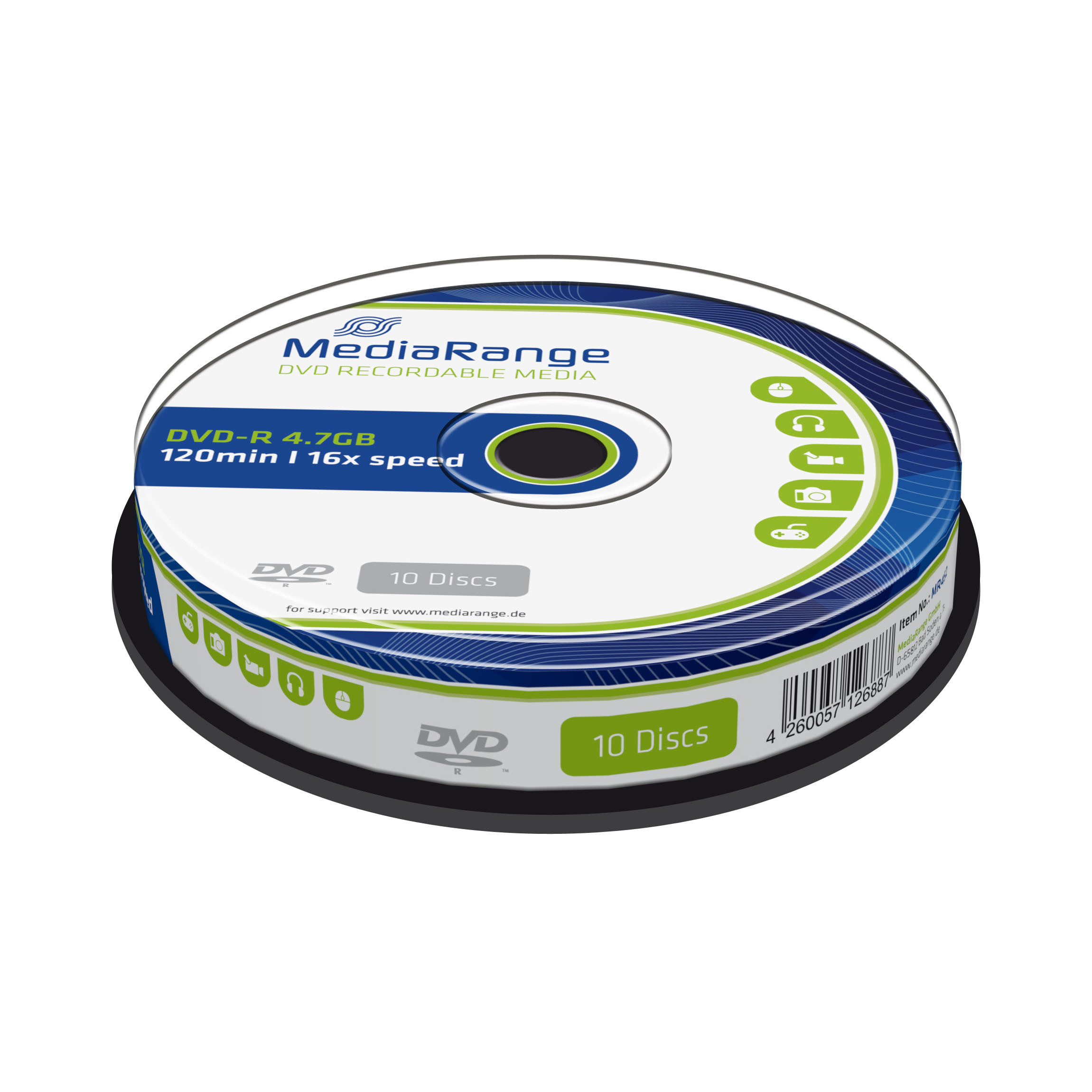 Kvalitní a cenově dostupná média DVD-R značky MediaRange. Média vám poskytnou spolehlivý zápis dat s kapacitou až 4,7 GB při maximální rychlosti zápisu až 16x. Je to tedy ideální řešení zálohování velkého množství dat, (např. digitální video, fotografie, zvukové záznamy či další soubory.) Média jsou balena po 10 kusech ve spindlu.