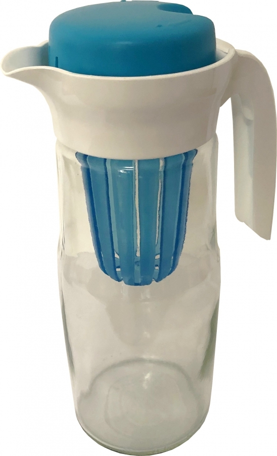 DUE ESSE, Skleněný džbán na limonádu s vyluhovacím sítkem 1,5 l, modrý