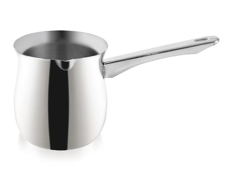 Džezva s nerezovou rukojetí je určená především k vaření kávy. Horní okraj nádoby je opatřen „límcem“, který brání přetékání kávy při vzkypění. Je opatřena hubičkou na snadnější nalévání. Lze použít na elektrickém i plynovém sporáku, sklokeramické desce.Materiál: nerez. Objem 0,4 l.