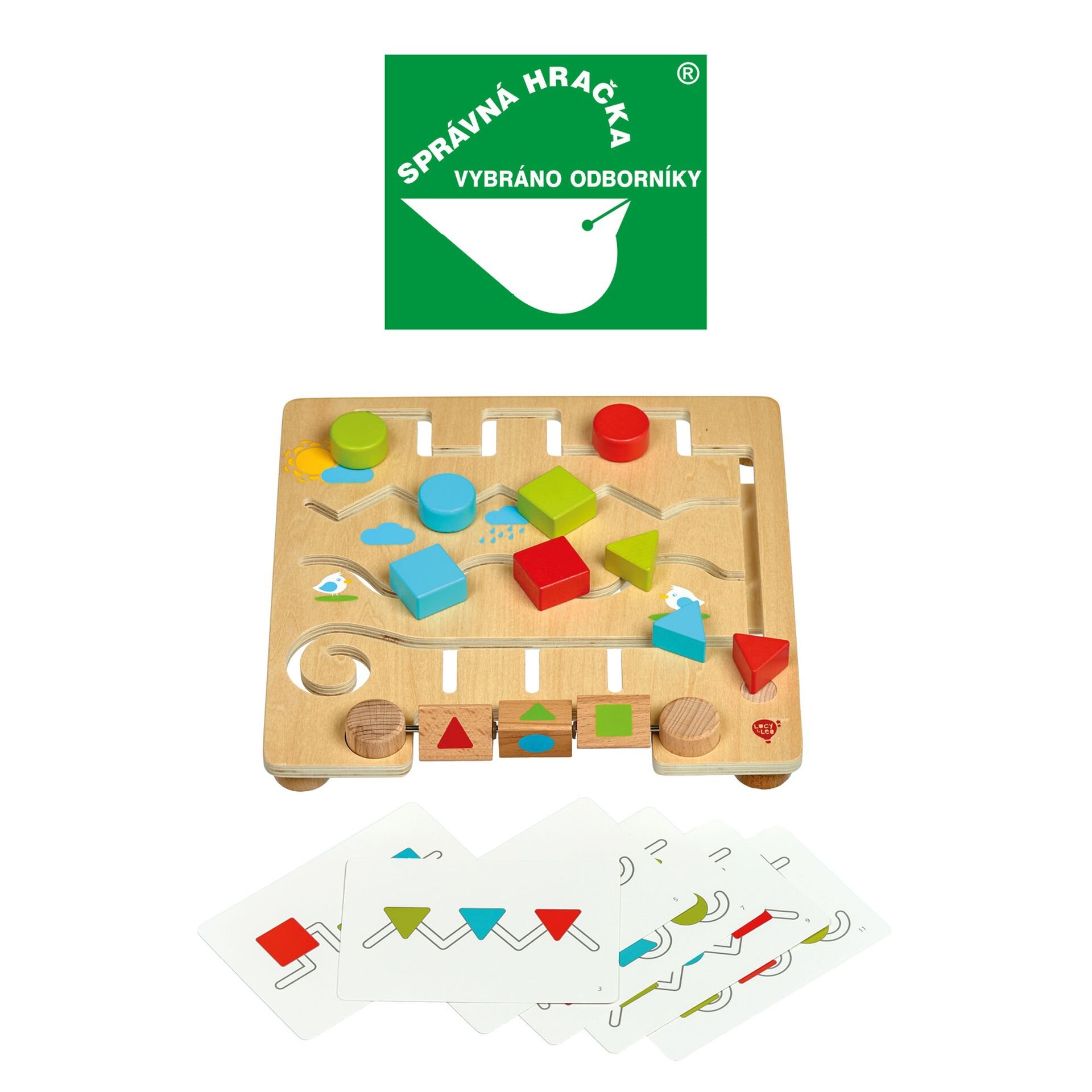 Geometrické tvary s předlohami je dřevěné bludiště, které dětem pomáhá rozvíjet logické myšlení a senzomotorické dovednosti. Dřevěná herní deska s hladkým povrchem má řadu různých klikatých cestiček s barevnými dřevěnými tvary. Děti se snaží daný tvar posouvat po cestičce tak, aby se shodoval s...