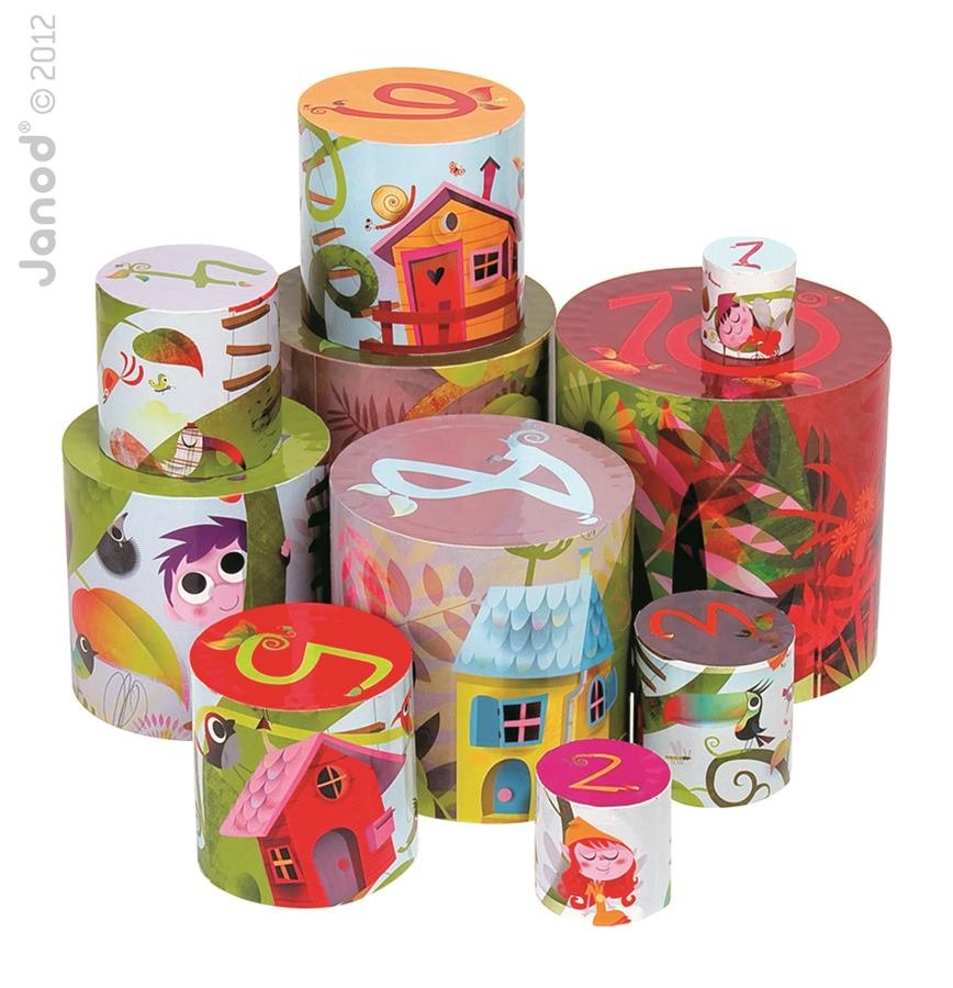 Skládací pyramida Pohádkový strom Janod kulatá od 1 roku 10 dílů