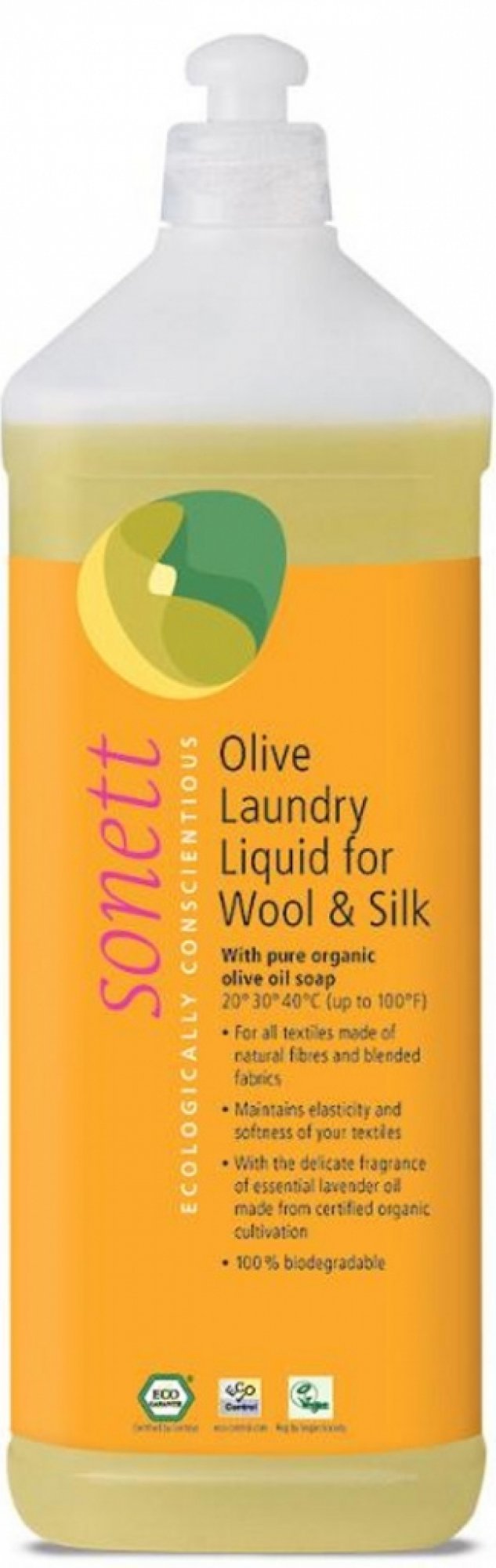 Sonett prací gél na vlnu a hodváb obsahuje kvalitné olivové mydlo z ekologicky pestovaných olív z oblasti Stredomoria a repkový olej, ktoré spoločne tvoria šetrný, no účinný čistiaci prostriedok. Vďaka pridanému cukrovému tenzidu si poradí aj s tvrdou vodou a zabraňuje usadzovaniu nečistôt na vašu jemnú garderóbu. Etanol pomáha udržiavať gél tekutý a zvyšuje schopnosť rozpúšťať tukové nečistoty, čo vedie k lepším výsledkom prania bez poškodenia vlákien.