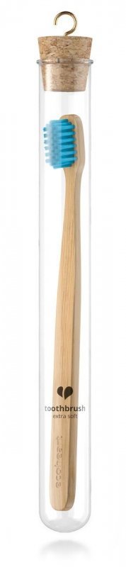 Ecoheart Bambusový kartáček ve skleněném pouzdře (extra soft) - modrý