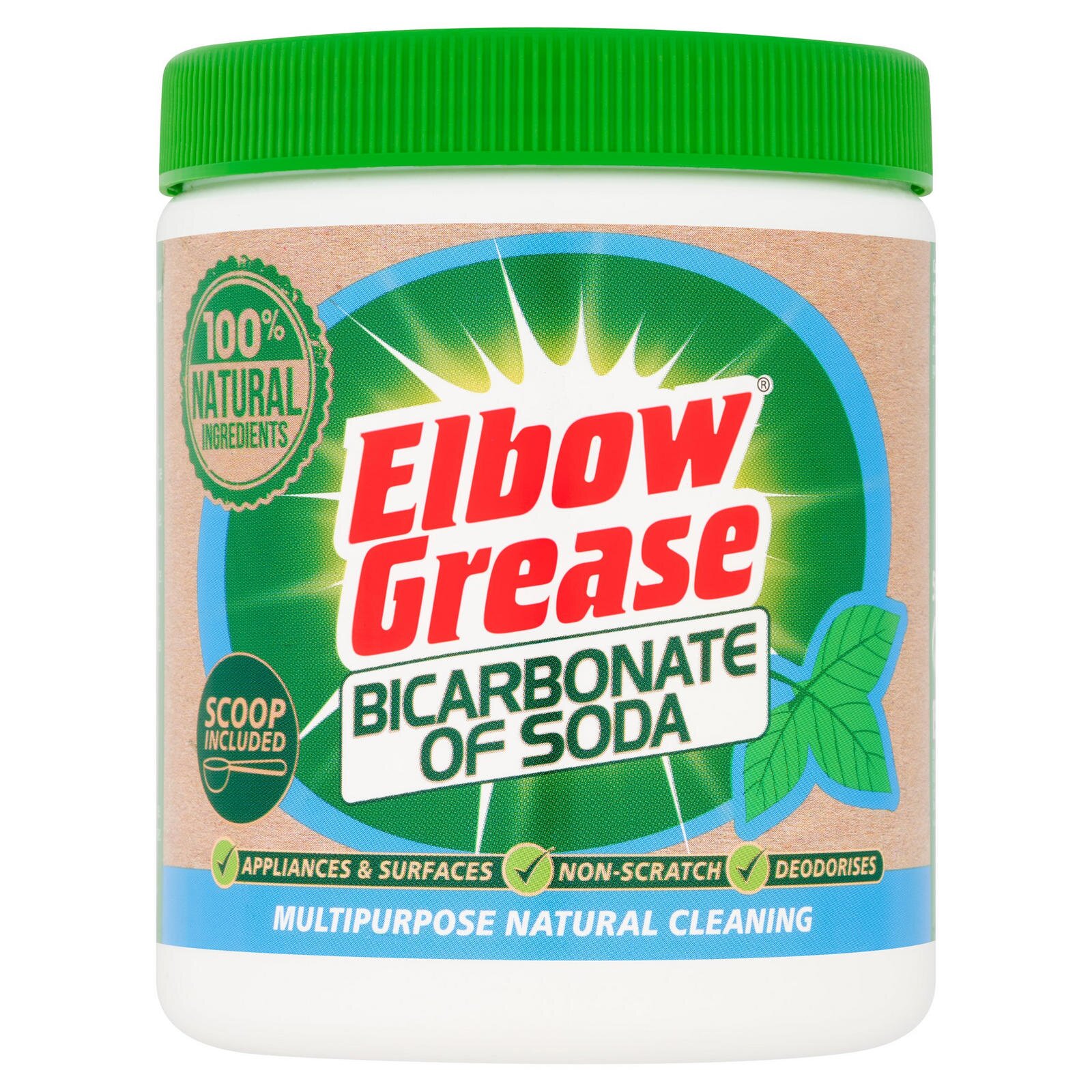 Elbow Grease všestranný přírodní čistič - uhličitan sodný - 500gObjevte všestranný čistič od Elbow Grease, který dokáže účinně vyčistit mastnotu, špínu a skvrny a zápach. Tento víceúčelový čisticí prostředek je výkonným pomocníkem pro různé domácí úkoly. Je to přírodní deodorant, odstraňovač...
