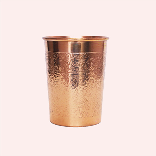Měděný hrnek s rytým ornamentem je součástí ryté kolekce a zobrazuje bohaté dědictví a umělecké řemeslo, které se v Indii praktikuje po generace. Naservírujte svým hostům vodu jako v majestátním indickém paláci!