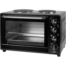 Elektrická trouba se dvěma deskamiVnitřní objem trouby 34 lFunkce trouby a vařiče současněGrilovací rošt a odkapávací plech součástí příslušenstvíPříkon grilu 600 WPříkon trouby 2 000 WLitinové plotny o průměru 155 mm (600 W) a 185 mm (1 000 W)Samostatná regulace jednotlivých desekPlynulé...