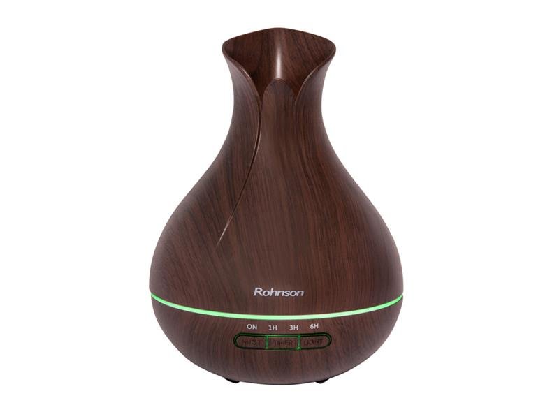 Dekorativní aroma difuzér na vonné oleje. Rohnson R-9585 vytváří jemnou mlhu, a šíří tak vůni do prostoru. Na jedno naplnění vydrží produkovat páru až 12 hodin. Potěší 2 nastavitelné režimy, časovač, barevné podsvícení a automatické vypnutí při prázdném zásobníku.