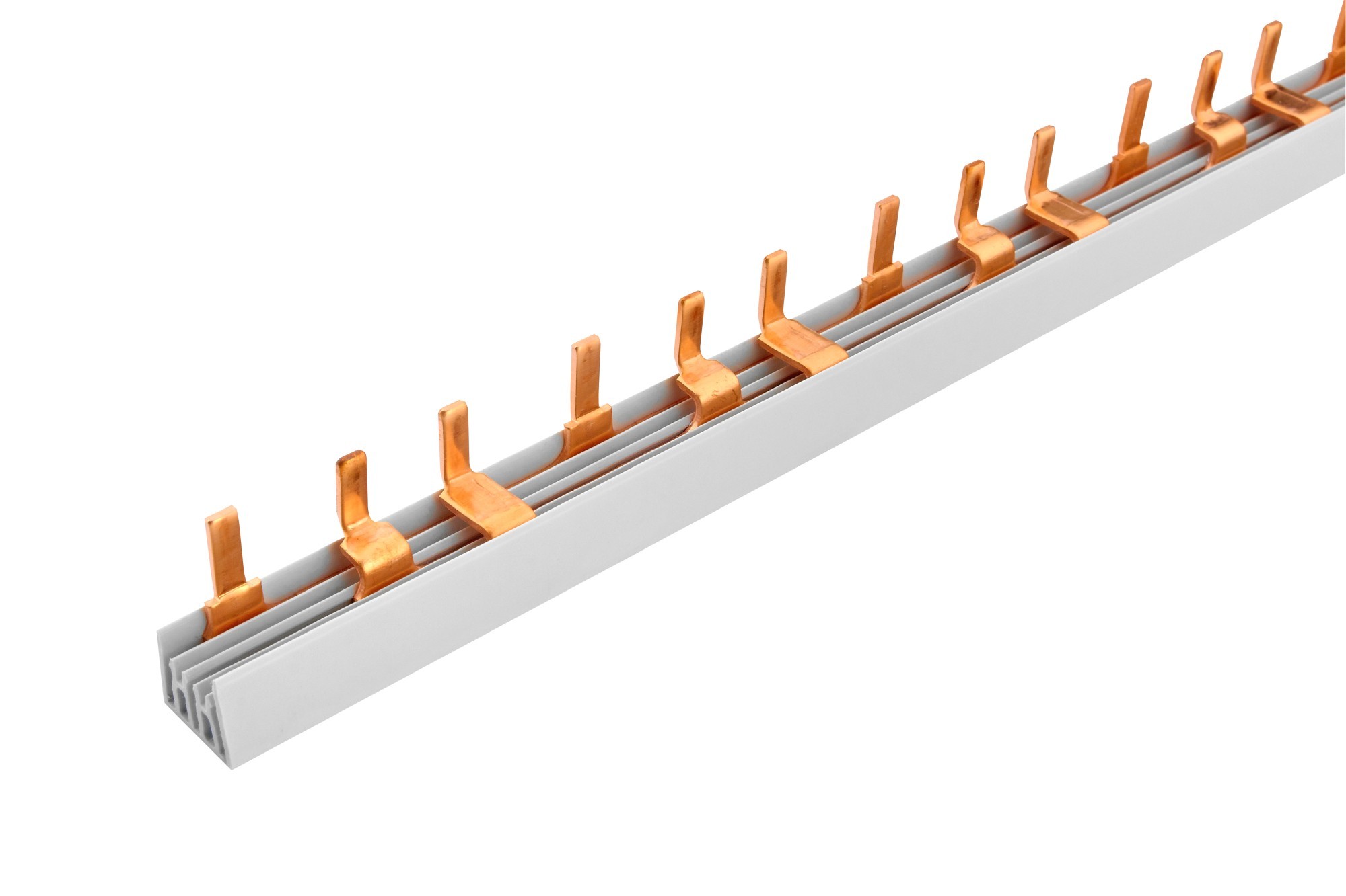 Prop. lišta S-3L-210/10, kolík (jazýček), 3pól., 63A, rozteč 17,8mm, 10mm2, 210mm, přip. míst = 12, rozměr kolíku 4x11,5mm, koncovka EK-C-3/10.Propojovací fázové lišty umožňují propojení modulových přístrojů (např. jističů, chráničů, modulových vypínačů apod.) jednoduchým a profesionálním...