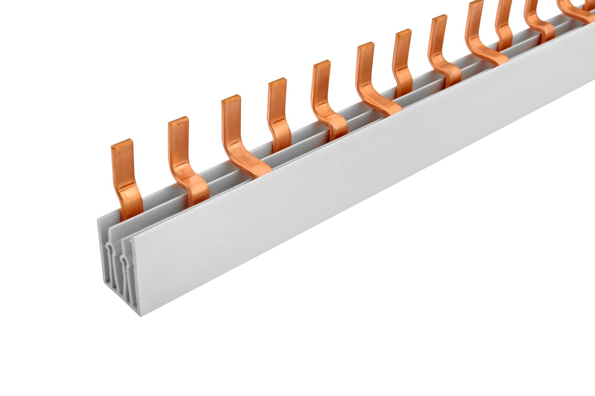 Prop. lišta S-3L-1000/25, kolík (jazýček), 3pól., 100A, rozteč 17,8mm, 25mm2, 1m, přip. míst = 57, rozměr kolíku 6x15mm, koncovka EK-C-2+3/25/36.Propojovací fázové lišty umožňují propojení modulových přístrojů (např. jističů, chráničů, modulových vypínačů apod.) jednoduchým a profesionálním...