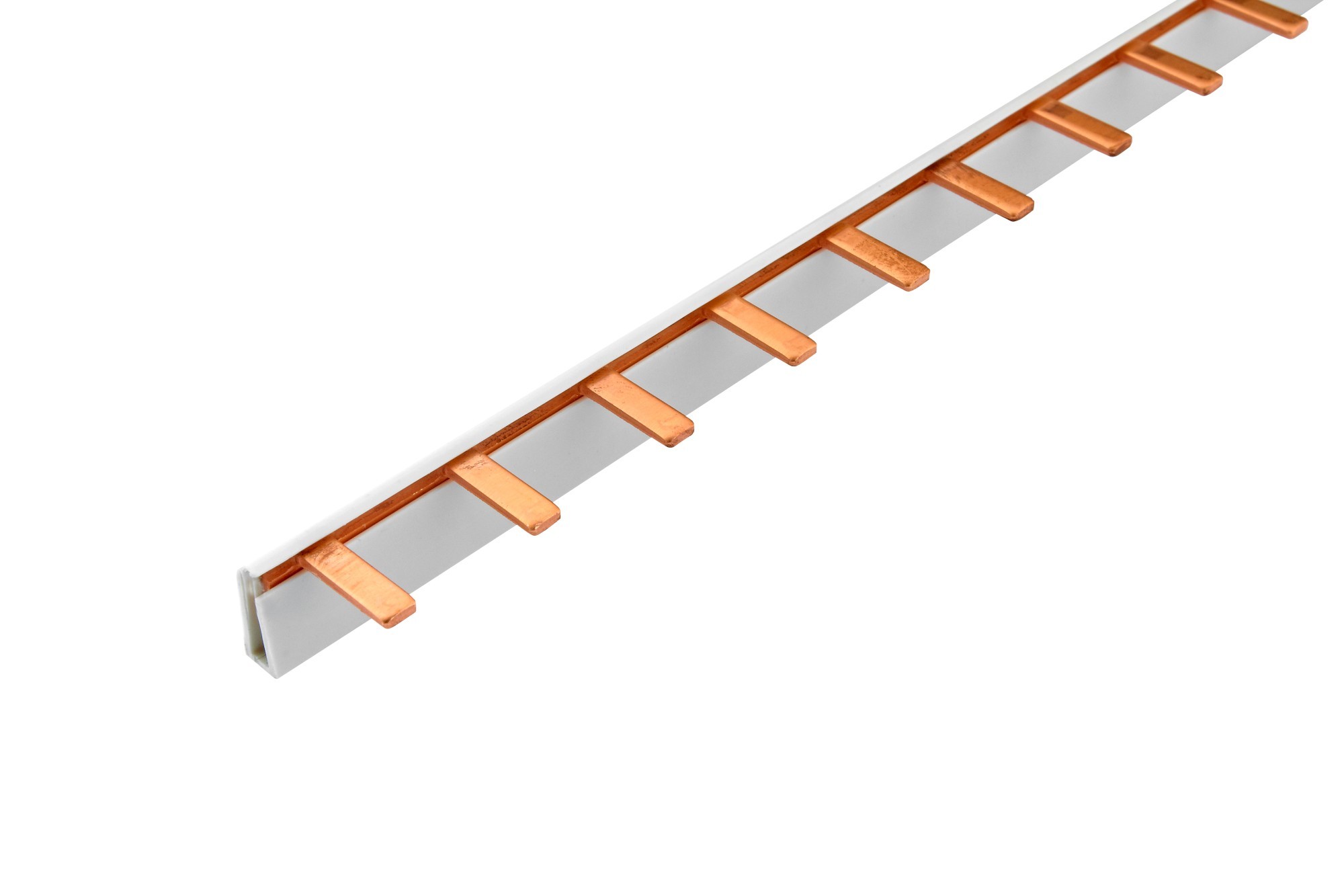 Prop. lišta S-1L-1000/10 ISO, kolík (jazýček), 1pól., 63A, rozteč 17,8mm, 10mm2, 1m, přip. míst = 57, rozměr kolíku 4x10,5mm, koncovka EK-C-1/10-16.Propojovací fázové lišty umožňují propojení modulových přístrojů (např. jističů, chráničů, modulových vypínačů apod.) jednoduchým a profesionálním...