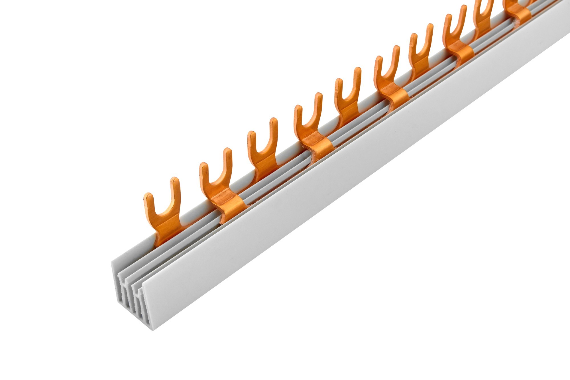 Prop. lišta G-2L-1000/16, vidlička, 2pól., 80A, rozteč 17,8mm, 16mm2, 1m, přip. míst = 56, pro šroub M5-M6, koncovka EK-C-2+3/16.Propojovací fázové lišty umožňují propojení modulových přístrojů (např. jističů, chráničů, modulových vypínačů apod.) jednoduchým a profesionálním způsobem. Standardní...