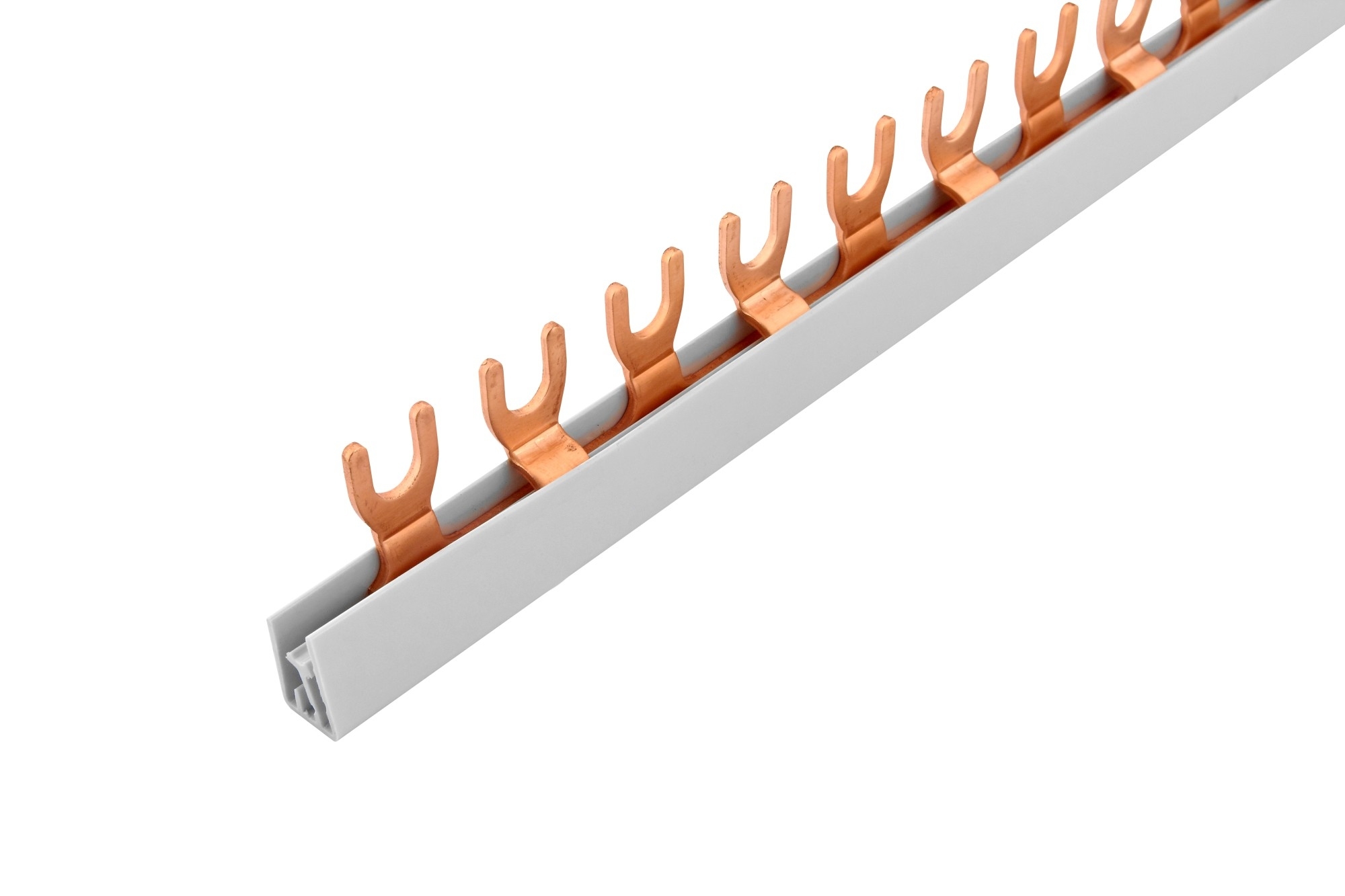 Prop. lišta G-2L-210/10, vidlička, 2pól., 63A, rozteč 17,8mm, 10mm2, 210mm, přip. míst = 12, pro šroub M5-M6, koncovka EK-C-2/10.Propojovací fázové lišty umožňují propojení modulových přístrojů (např. jističů, chráničů, modulových vypínačů apod.) jednoduchým a profesionálním způsobem. Standardní...