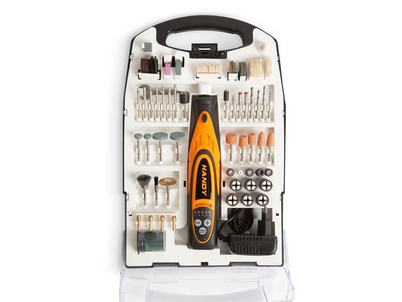 Brusný, gravírovací a vrtací stroj HANDY DRILL byl speciálně vyvinut pro domácí použití, manikúru/pedikúru a domácí kutily. Díky zabudovanému akumulátoru můžete pracovat bez kabelů kdekoli. Umožňuje vám vrtání, leštění, gravírování nebo dokonce vyřezávat menších otvorů. Může to být ideální řešení pro odstranění okrajů otřepů. Maximální kapacita otvoru Ø3,2 mm. Různé doplňky lze snadno a rychle připojit. Díky svým kompaktním rozměrům a hmotnosti je s nářadím snadná manipulace i na obtížně dostupných místech. Může být vhodný také pro přesné obrábění dřeva, kovu a plastů.