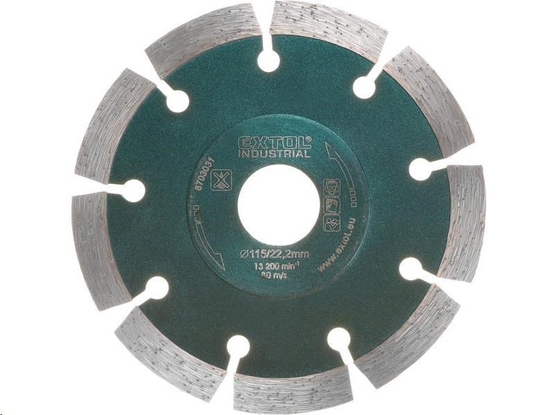 Diamantový segmentový kotouč pro suché řezání betonu, železobetonu, zdiva, kamene, cihel, žuly, dlaždic, obkladů, mramoru, břidlice, křemene, pískovce, asfaltu a střešních tašek.
