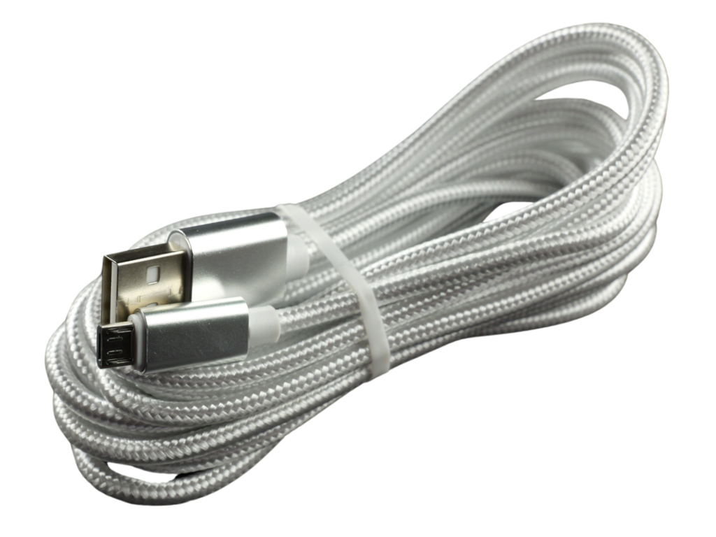 Pletený kabel 3m USB na MICRO-USB,Bílý