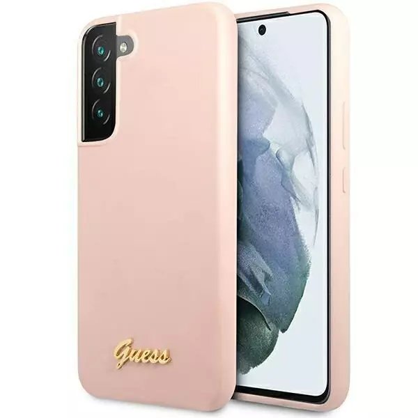 Pouzdro Guess GUHCS23SLSLMGPP pro Samsung Galaxy S23 S911 růžové/růžové pevné pouzdro Silikonové Script Metal Logo