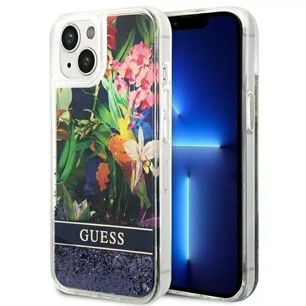 Etui Guess GUHCP14MLFLSB do Apple iPhone 14 Plus 6,7" niebieski/modré pevné pouzdro Flower Liquid Glitter