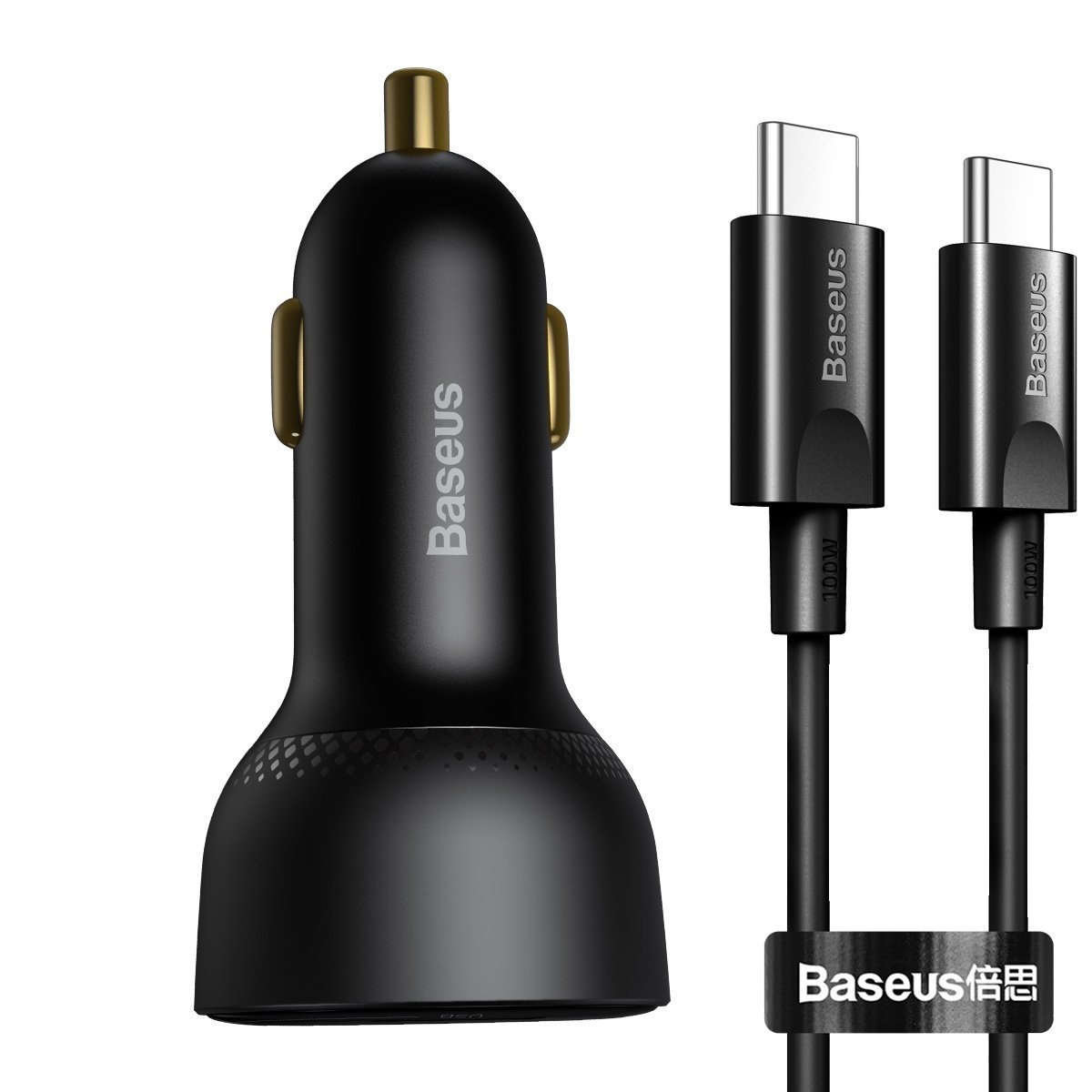 Baseus Superme USB nabíječka do auta, USB-C, 100W USB-C kabel (černý)