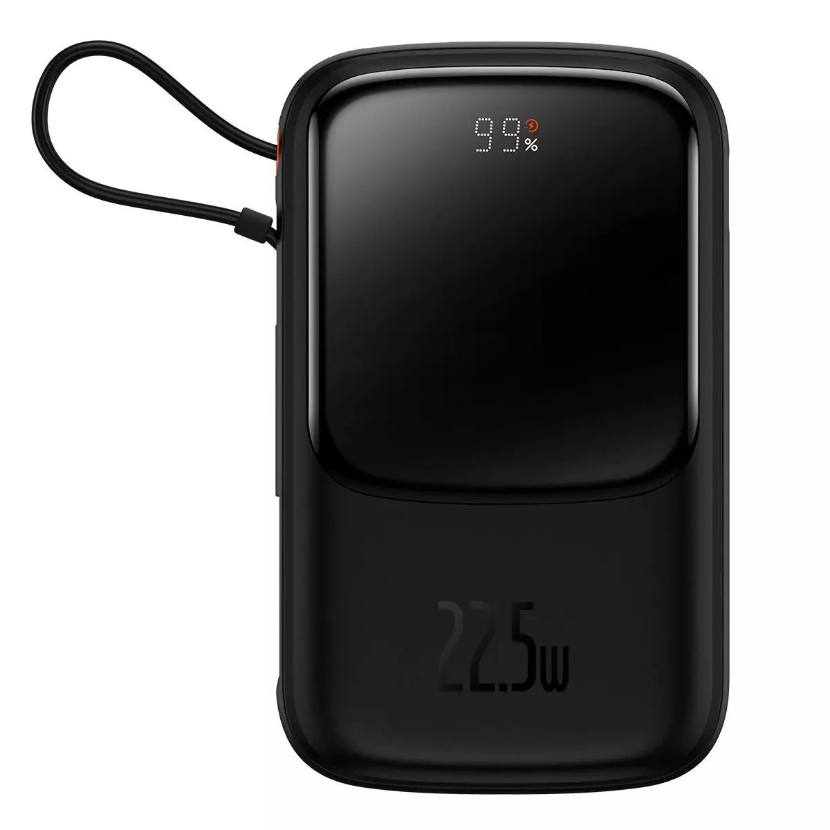 Powerbanka s rychlým nabíjením Baseus Qpow Digital Display 10000mAh 22,5W QC/PD/SCP/FCP s vestavěným USB-C kabelem černá
