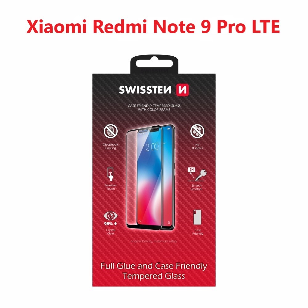 SKLO SWISSTEN FULL GLUE, COLOR FRAME, CASE FRIENDLY PRO XIAOMI REDMI NOTE 9 PRO/9 PRO MAX/9S ČERNÉ