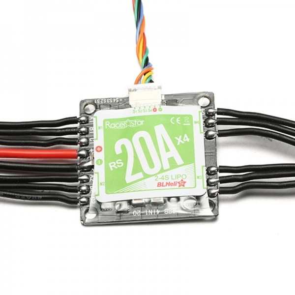 Racerstar RS20Ax4 V2 je moderní regulátor typu 4in1 pro výkonné multikoptéry. Díky novému BLHeli_S firmwaru s hardwarově generovaným PWM poskytuje jemnější řízení a tichý chod motoru. Dodáváme s předpájenými dráty napájení a ovládání.Vzhledem k velikosti a tvaru se tento typ regulátoru instaluje...