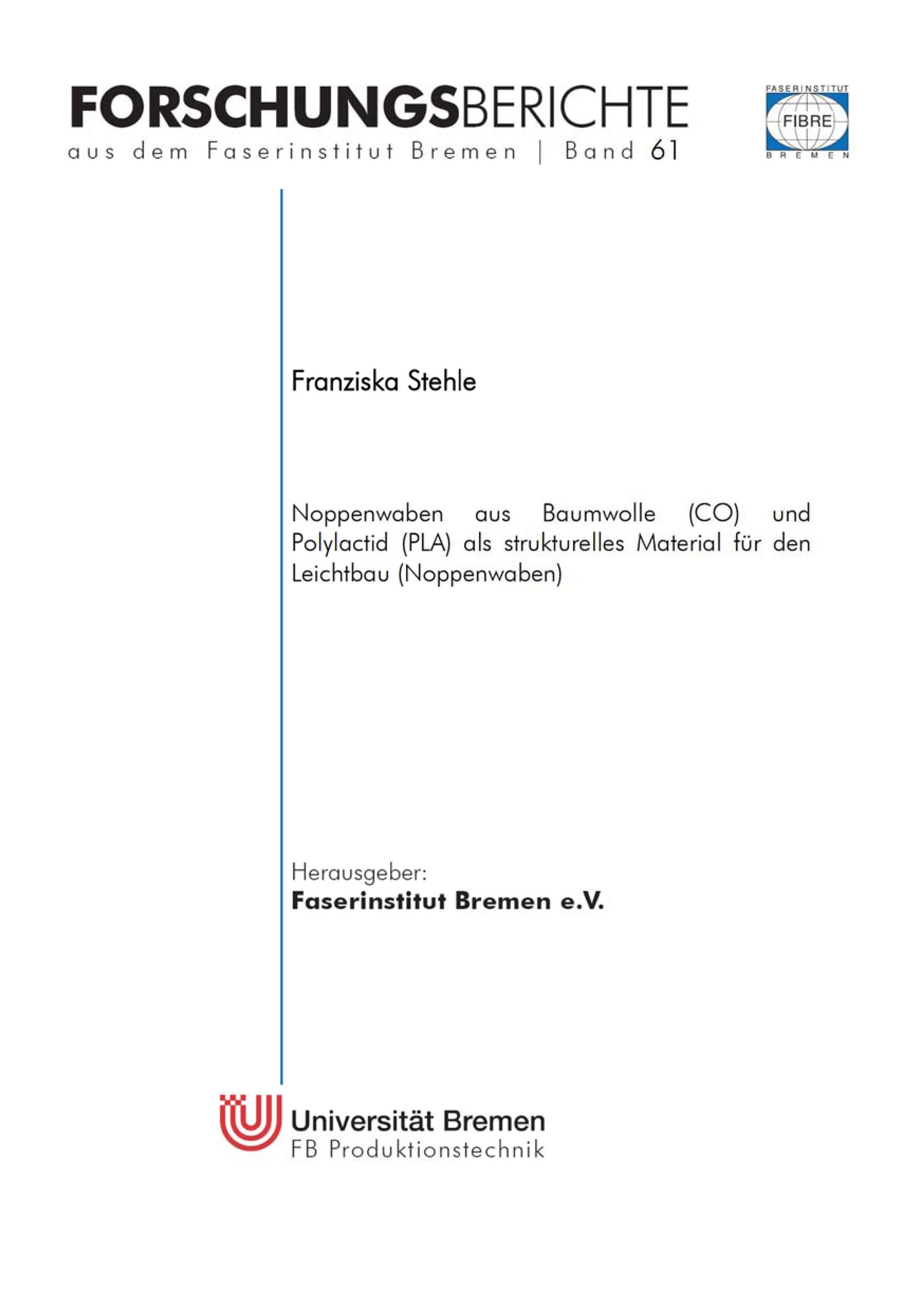 Noppenwaben aus Baumwolle (CO) und Polylactid (PLA) als strukturelles Material für den Leichtbau (Noppenwaben) (německy)
