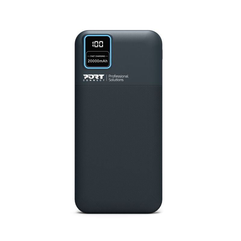 PORT CONNECT powerbanka 20 000 mAh, LCD displej, USB-A QC / USB-C / Micro USB, černá