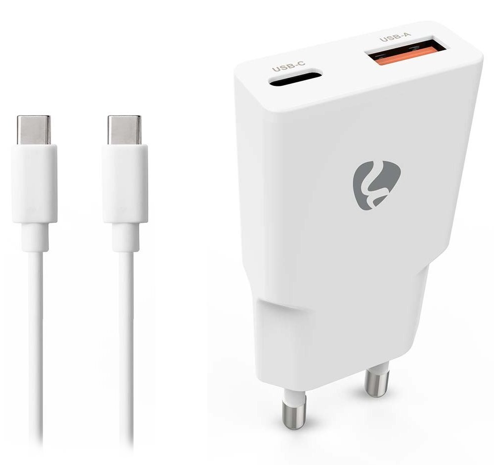 NEDIS síťová nabíječka/ 30 W/ PD 3.0/ rychlé nabíjení/ 1.5 / 2.0 / 2.22 / 3.0 A/ USB-A/ USB-C/ bílá/ kabel 1,5m