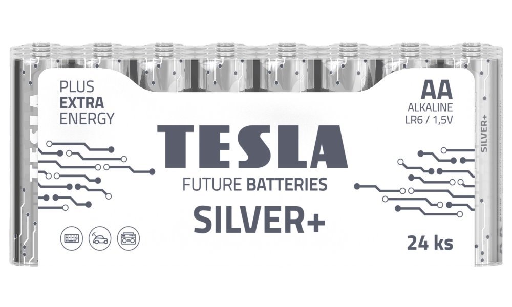 TESLA SILVER+ alkalická baterie AA (LR06, tužková, fólie) 24 ks