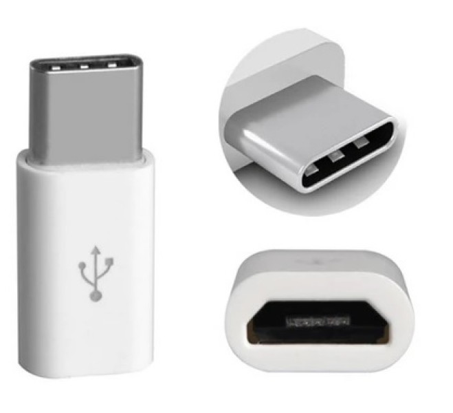 Adaptér microUSB - microUSB typ C bílý pro nabíječky a datové kabely