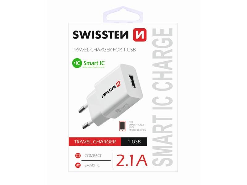 Síťový adaptér Swissten SMART IC disponuje USB portem s výstupním proudem 2,1A. Technologie SMART IC navíc detekuje nabíjecí protokol daného zařízení a optimalizuje tak proces nabíjení.