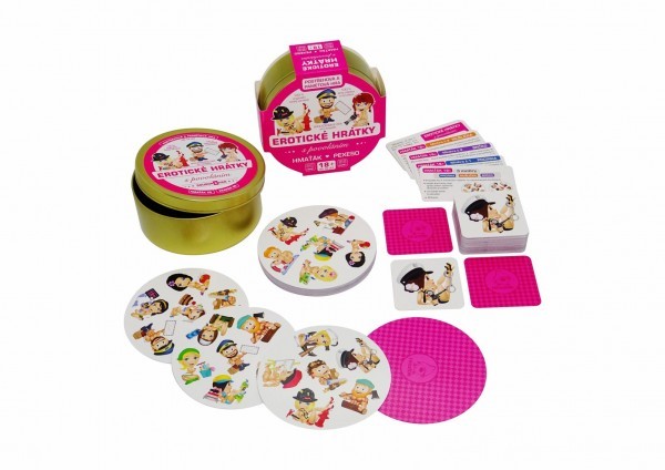 Zábavná karetní postřehová hra balená v malé plechové krabičce. To jsou Erotické hrátky, které obsahují dvě zábavné karetní hry: Hmaťáka a Pexeso. Dospělí si zábavnou formou zlepšují postřeh a paměť. Jednoduchá pravidla a krásně malované obrázky.