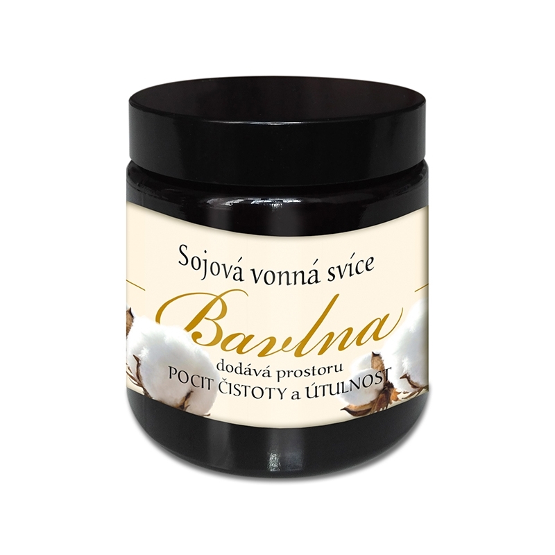 Luxusní svíčky ve skle jsou vyrobeny ze sójového vosku. Ten je vyroben ze sójových bobů a neobsahuje žádné pesticidy, herbicidy ani ropné příměsi. Při hoření nevylučuje žádné škodliviny. Doba hoření svíčky je až o 50 % delší než u běžných parafinových svíček, cca 22hodin.BAVLNA - doslova krémová...