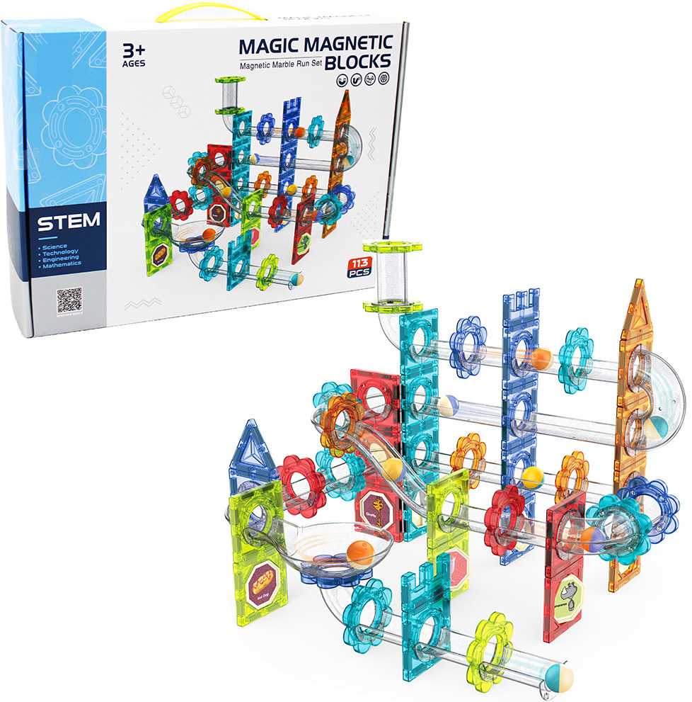 Obsah balení: 113 dílků stavebnice (přesný počet jednotlivých dílů dle obrázku na obalu) Magnetické spojovací prvky Kuličky pro dráhu Bezpečnostní upozornění: Nevhodné pro děti do 3 let Obsahuje malé části - nebezpečí spolknutí nebo vdechnutí Obsahuje magnety - při spolknutí nebezpečné V případě...