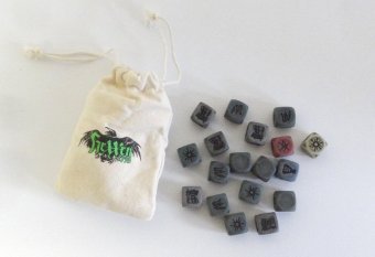 Das Set enthält 18 speziell für HeXXen 1733 angefertigte sechsseitige Würfel. 10 HeXXen-Würfel werden zur Bestimmung von Erfolgen und zum Aktivieren von Esprit-Kräften genutzt, 5 Januswürfel stellen Boni und Mali dar und jeweils ein Blut-, Segnungs- und Elixierwürfel entscheiden über die Wirksamkeit von Zuständen und besonderen Jägerkräften.
