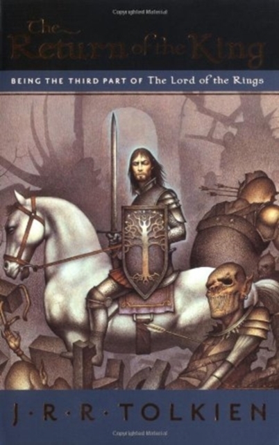 The standard harcover edition of the concluding volume of The Lord of the Rings includes a large format fold-out map and extensive appendices. As the Shadow of Mordor grows across the land, the Companions of the Ring have become involved in separate adventures. Aragorn, revealed as the hidden heir of the ancient Kings of the West, has joined with the Riders of Rohan against the forces of Isengard, and takes part in the desperate victory of the Hornburg. Merry and Pippin, captured by Orcs, escape into Fangorn Forest and there encounter the Ents. Gandalf has miraculously returned and defeated the evil wizard, Saruman. Sam has left his master for dead after a battle with the giant spider, Shelob; but Frodo is still alive -- now in the foul hands of the Orcs. And all the while the armies of the Dark Lord are massing as the One Ring draws ever nearer to the Cracks of Doom.