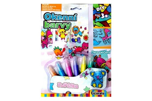 Okenní barvy třpytivé zvířátka 6ks + předlohy na kartě 21x28x2cm