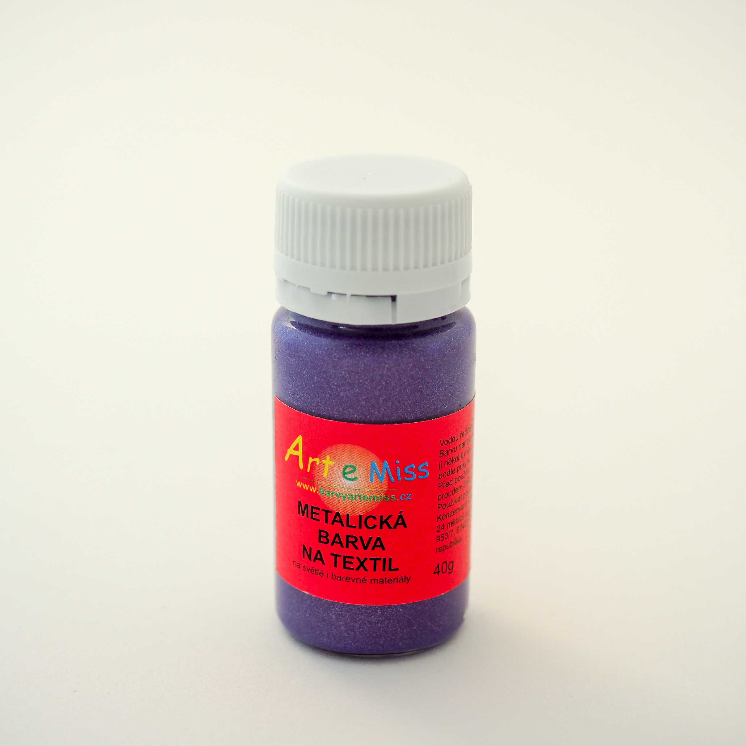 Barva obsahuje speciální metalický pigment tvořený drobnými částečkami a proto dobře kryje. Na většinu přírodních materiálů, polyester a směsi. Pokud si nejste jisti složením, vyzkoušejte na kousku látky. Můžete nanášet štětcem, tupováním, razítkováním... Hustá konzistence nedovoluje stříkání...