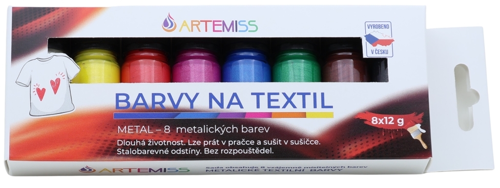 Barva obsahuje speciální metalický pigment tvořený drobnými částečkami a proto dobře kryje. Na většinu přírodních materiálů, polyester a směsi. Pokud si nejste jisti složením, vyzkoušejte na kousku látky. Můžete nanášet štětcem, tupováním, razítkováním... Hustá konzistence nedovoluje stříkání...